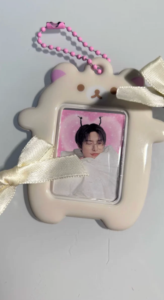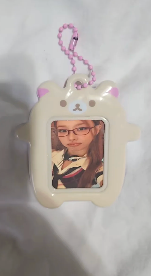 Super cute bigger than expected but holds photos safely, i attached it to my phone lol i might buy both just to have them from how cute they are